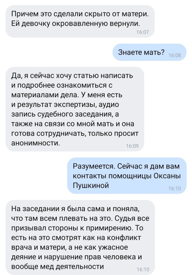 Переписка Седы с клиникой