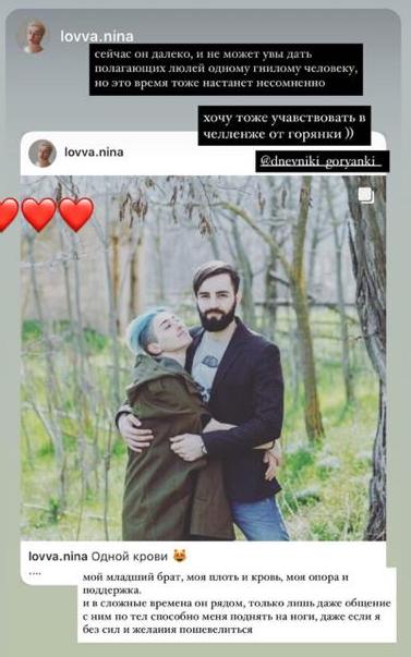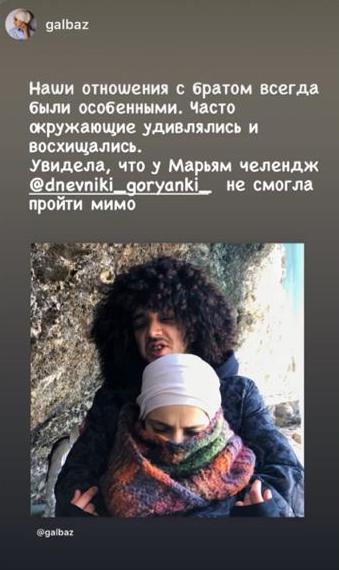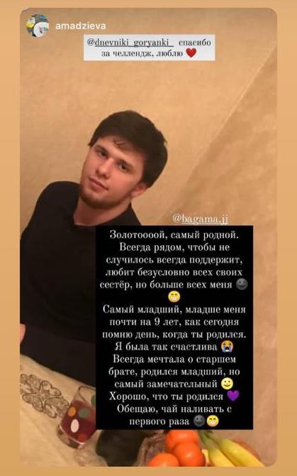 «Я на эмоциях написала своему брату сообщение, — рассказывает Марьям. — Поблагодарила его за то, что он такой классный, за то, что я всегда в любом возрасте могу прийти к нему и сказать: «Гасан, вот так и вот так, меня тут обижают, помоги, пожалуйста». И я заскринила наш диалог и выложила в сториз. Это запустило такой челлендж классный».