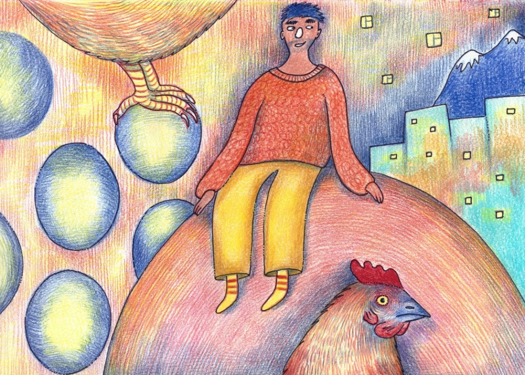 Лет через пять они уехали из Махачкалы уже втроем. Третьей была маленькая девочка с двойной еврейско-корейской фамилией. И сейчас живут то где-то в Германии, то где-то в Москве. А когда Борька звонит, я спрашиваю его, члена Союза художников и прочих разных Союзов «Ты помнишь, что рисовать начал здесь, и что первая твоя картина называлась Курочка Ряба, и была на ней какая-то загогулина на ножках, а вокруг нее сплошь яйца — круглые, треугольные, сосисочного вида? Помнишь, зараза?».