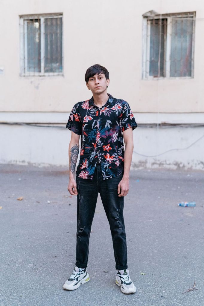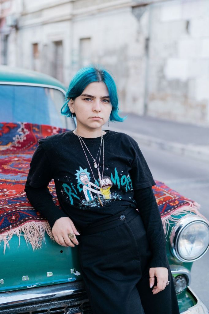 – Она художница, – отвечает на мой немой вопрос Мадина. – Ей часто пишут типа: «Зачем так рисуешь, ты что, нефор?» А в жизни выглядит обычно, да. Когда мы шли с одной девочкой, у нее короткая стрижка, на нее постоянно обращали внимание. Пока я ее снимала, подошел мужчина интеллигентный с виду, в очках, и фотографировал ее. Она общительная, не забитая, уверенная в себе. Говорит, что устала постоянно доказывать людям, что имеет право ходить, как хочет.