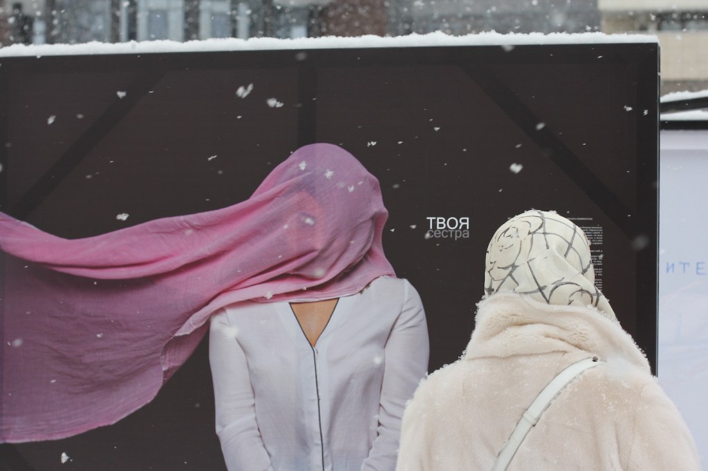 Портреты героинь на темном фоне, их лица нельзя разглядеть – они спрятаны под яркими платками. Каждую фотографию сопровождает личная история пережитого насилия. Зрители подолгу стояли у портретов, зачитываясь историями, кто-то уходил со слезами на глазах.
