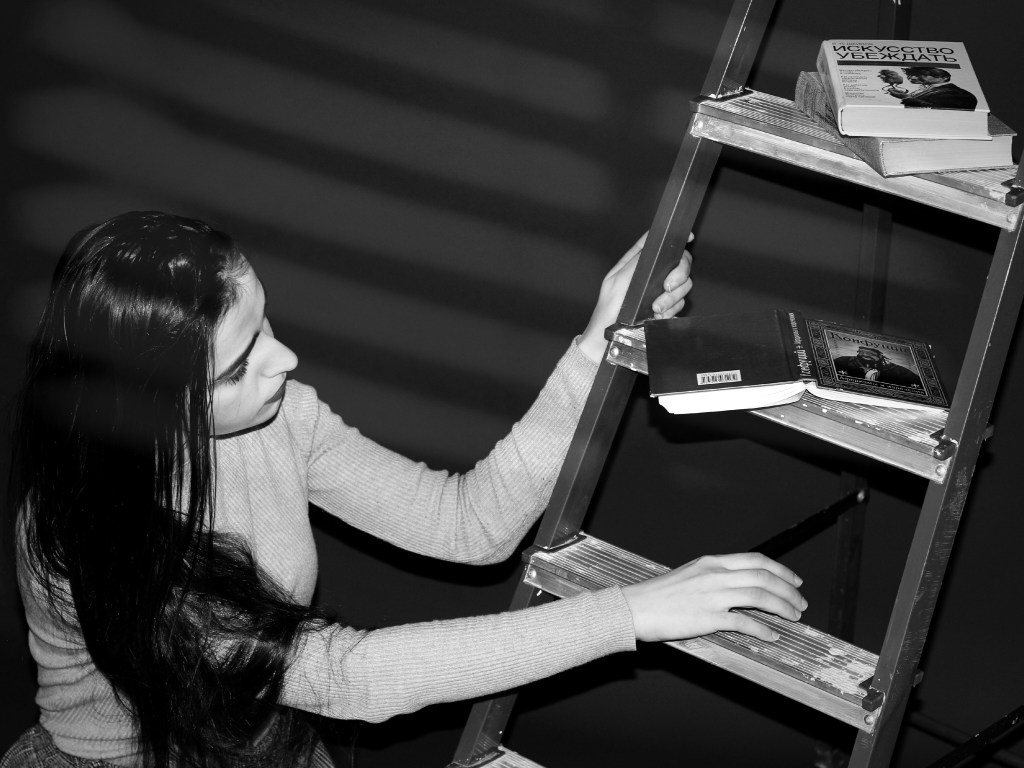 – Да, все так. Я решила через эту фотовыставку показать наши наболевшие проблемы. Одна из них – разведенные женщины. Каждая из 20 фотографий – это эмоции, с реквизитами какими-то, с деталями, привязывающими к именно этой истории. Например, что-то связанное с учебой – там книги у нее на лестнице, а лестница такая старенькая, грязная. Ее жизнь – эта лестница. Судьба ее. И она пытается что-то в нее заполнить, у нее все не выходит. Не получается.