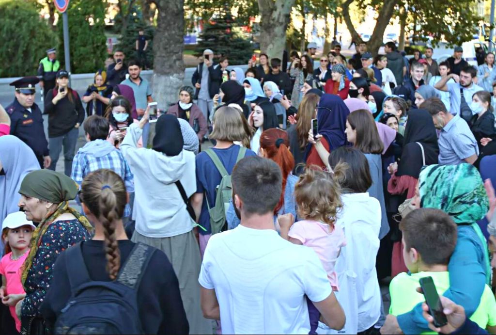 «Там говорилось, что нужно скрывать свое лицо, чтобы надели маски. Но многие были с открытыми лицами, – вспоминает Асият, ей 53 года, она медицинский работник, о митинге узнала из рассылки в ватсапе и отправилась туда с подругой. – Больше было женщин в хиджабах, меньше было в светской одежде. По настроению женщин было видно, что либо их сыновья, либо их мужья уже мобилизованы, или же получили повестки. У этих женщин уже не было выбора идти или не идти. Особенно возмутил этот их концерт ко Дню города. Тут война, горе, молодых ребят забирают, а они там, на площади поют и пляшут. Концерт в аду. Я не очень боялась, все же я взрослая женщина, не покрытая, но в платке, менты таких не очень трогают. Я на войну не отправляю никого, у меня дома призывников нет, а вот у моей подруги два сына призывного возраста. Раньше я была помягче, считала, что каждый имеет право на свою точку зрения. Но с февраля не могу говорить привычное «ты тоже, наверное, права». Я стала очень грубая. И дело не только в мобилизации, не так, что нас коснулось и мы вышли, нет. Сама война эта ни к чему! Я против нее, естественно».